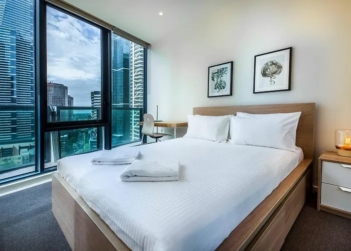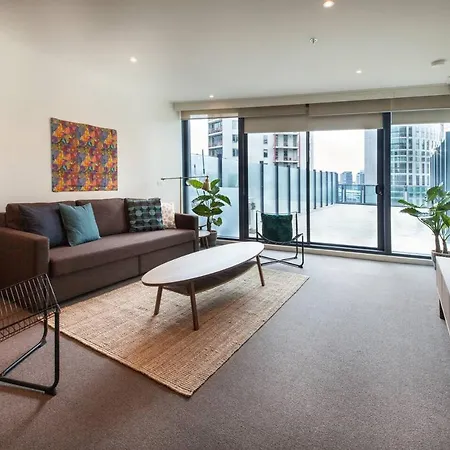 Просторные Апартаменты Southbank Hideaway On The Yarra With Huge Terrace с видом на город расположены в 5 минутах ходьбы от башни Эврика. Неподалеку апартаментов есть общественная парковка.